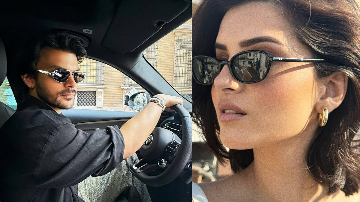 Veer Pahariya matches the ambiance with similar panache. Wearing a beige linen shirt and shorts, completed by a brown fedora and shades, he captures the relaxed elegance of a seaside European retreat. One of the most powerful photos has him stretching towards the camera as he strolls down a cobblestone street lined with bright fuchsia flossy bougainvillaea. Another finds him driving a fancy car, wearing a black tee and tinted glasses, oozing quiet confidence with ease.