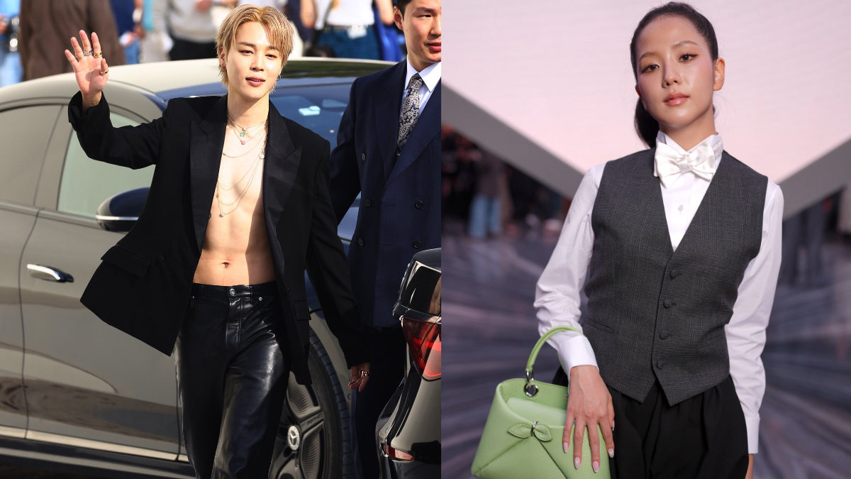 Jimin marked his fashion comeback following a two-year break for military service with a bold, all-black ensemble. Dressed in a daring open blazer that flaunted his toned abs, paired with shiny leather pants and matching shoes, the “Set Me Free Pt. 2” singer looked every bit the fashion icon. His strawberry blond hair was styled in a soft blow-dry, while stacked silver neckpieces and multiple rings added flair to his look, raising questions about his current status with Tiffany & Co.