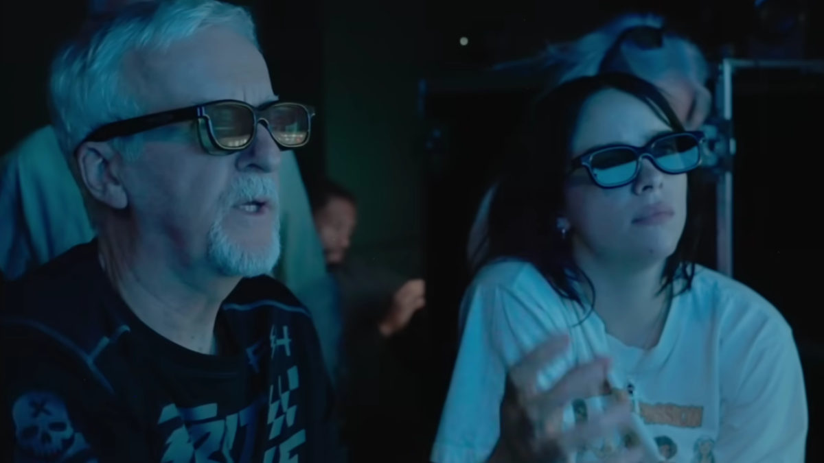 The trailer shows moments from behind the scenes of the tour, along with discussions between Billie Eilish and James Cameron. At the beginning of the trailer, Cameron tells her, “It’s your show. It’s your creative vision. This is going to blow people’s minds.” The video also shows both of them wearing 3D glasses and working together on how the film will look.